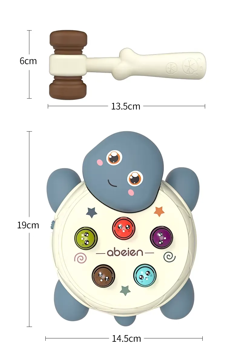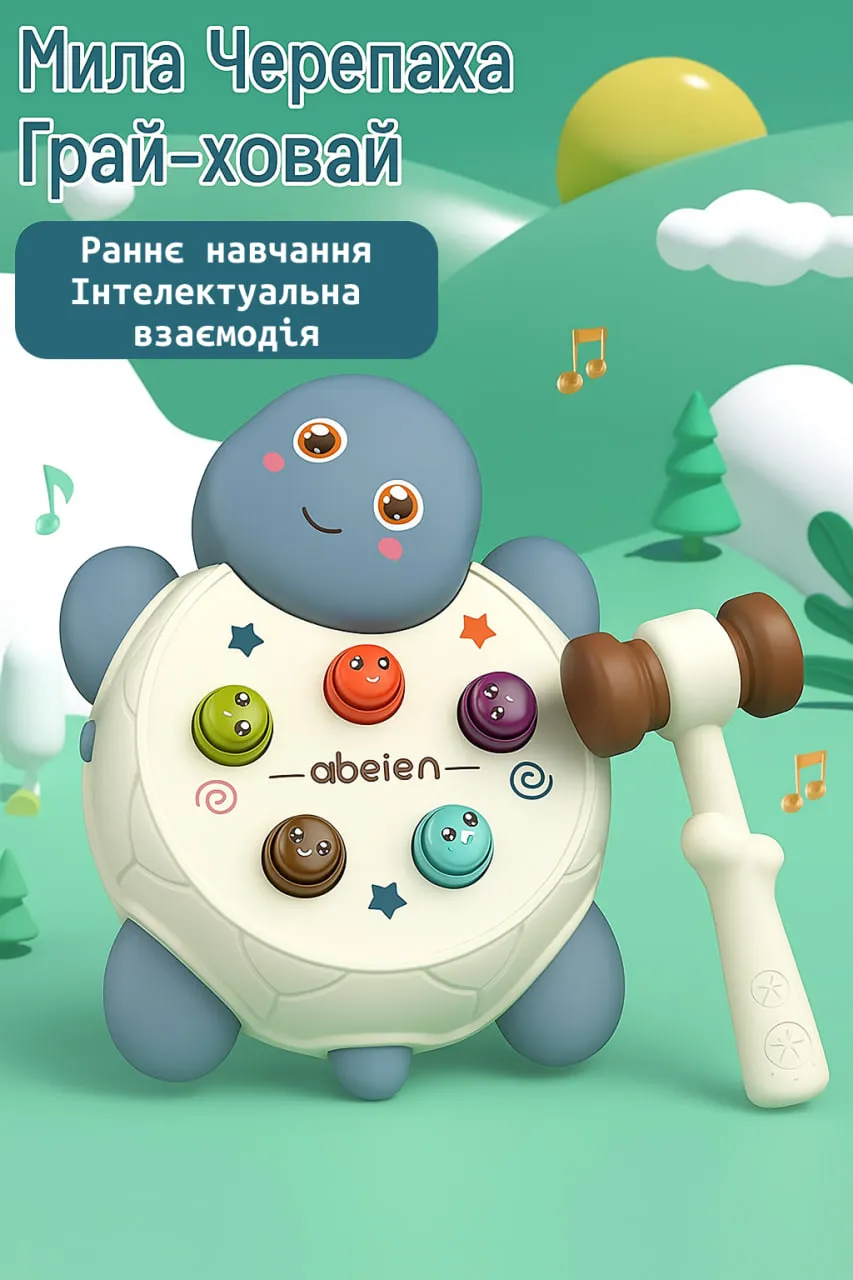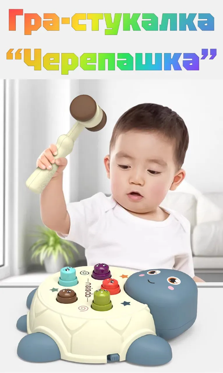 Ніжна рожева черепашка — ідеальна для маленьких принцес! Яскраві відтінки, світло, мелодії та веселий молоточок роблять гру захопливою та корисною. Допомагає розвивати моторику, увагу й слух у легкій ігровій формі.
